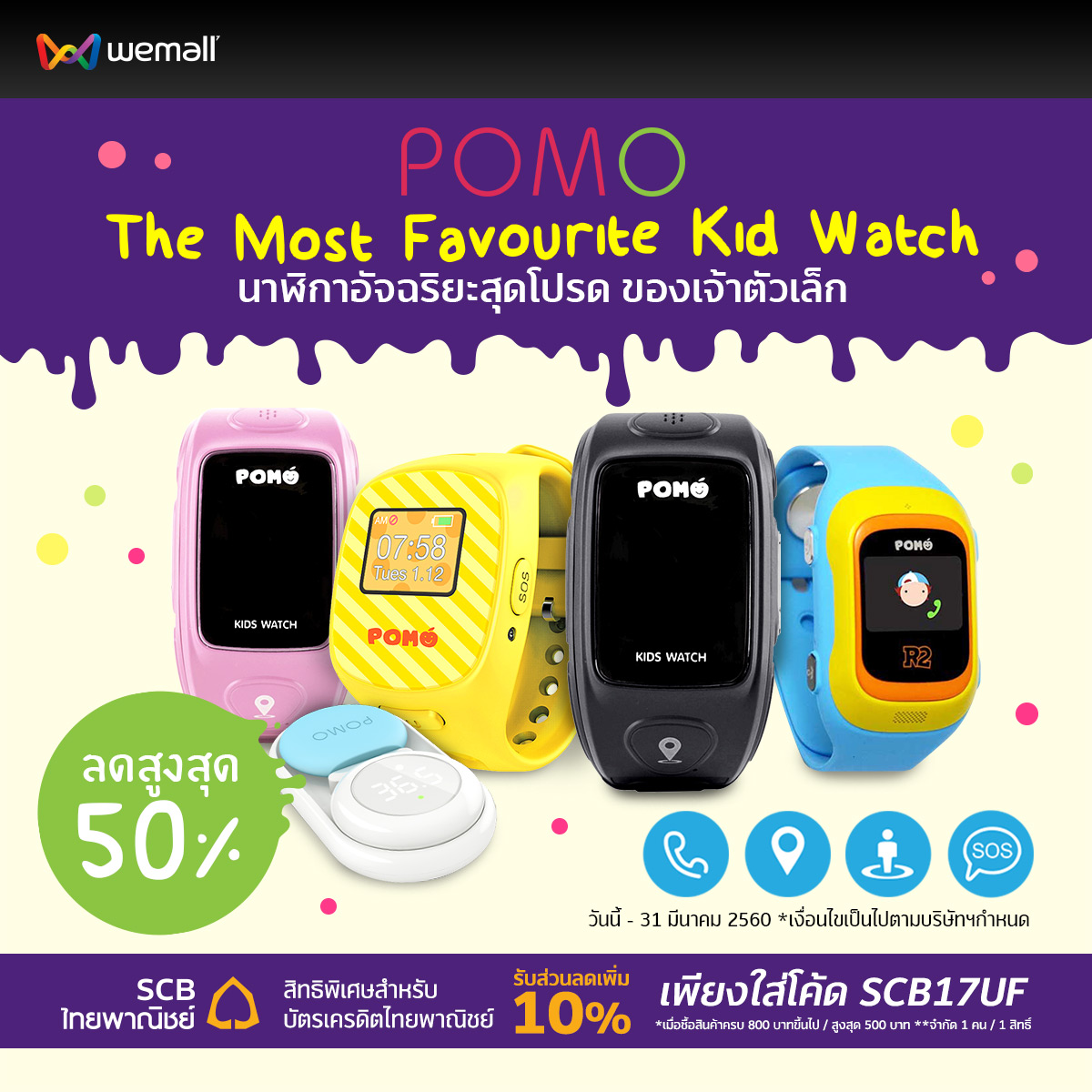 เพิ่มความ Smart ให้ลูกน้อยของคุณกับ Pomo House นาฬิกาอัจฉริยะสำหรับเด็กที่มาพร้อมฟังก์ชั่นมากมาย ทั้งการโทรออกจากตัวโทรศัพท์ได้ในทันที แถมยังมีระบบติดตาม GPS ภายในตัว และป้องกันละอองน้ำ, ฝุ่น ด้วยมาตรฐาน IP65 น้ำหนักเบา สามารถสแตนบายต่อเนื่องได้นานสูงสุดถึง 100 ชั่วโมง ที่มอบส่วนลดสูงสุดถึง 50% ตั้งแต่วันนี้ ถึง 31 มีนาคม 2560