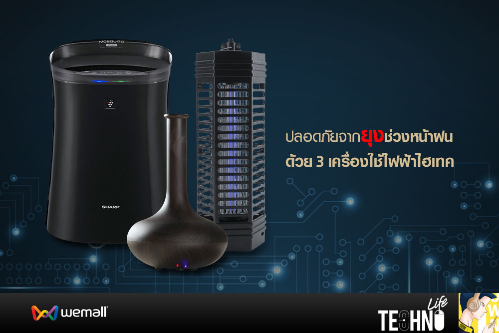 สวัสดีครับคุณผู้อ่านทุกท่าน พบกับคอลัมน์ Techno-Life กันอีกแล้ว ช่วงนี้เข้าสู่ฤดูฝนเป็นที่เรียบร้อยแล้วนะครับ ซึ่งถือเป็นช่วงที่เหล่ายุงร้ายมีการแพร่พันธุ์อย่างรวดเร็ว เพราะฝนที่ตกลงมาทำให้เกิดพื้นที่น้ำขังตามบริเวณต่างๆ ยุงจึงวางไข่กันอย่างสำราญใจ และเป็นที่รู้กันว่าช่วงหน้าฝน เราทุกคนอาจเป็นโรคไข้เลือดออกได้ หากรักษาไทันท่วงที อาจเสียชีวิตได้ ดังนั้นเราอย่านิ่งนอนใจ มาหาทางป้องกันภัยจากยุงในช่วงหน้าฝนกันไว้ก่อนดีกว่า ด้วย 3 เครื่องใช้ไฟฟ้าไฮเทค ที่เราจะนำเสนอให้กับคุณครั้งนี้ ว่าแต่เครื่องใช้ไฟฟ้าทั้ง 3 จะมีประสิทธิภาพในการไล่ยุง กำจัดมันอย่างไร มาดูกันเลย